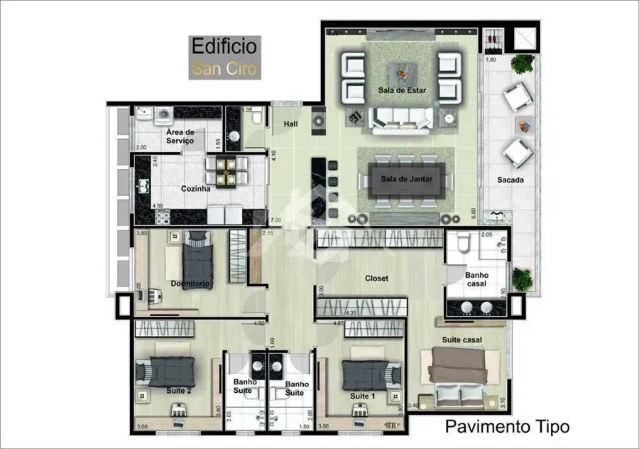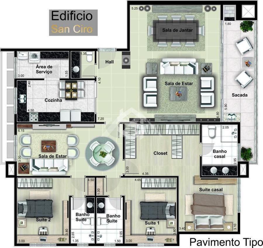 • Área Total Privativa:177,35 m²