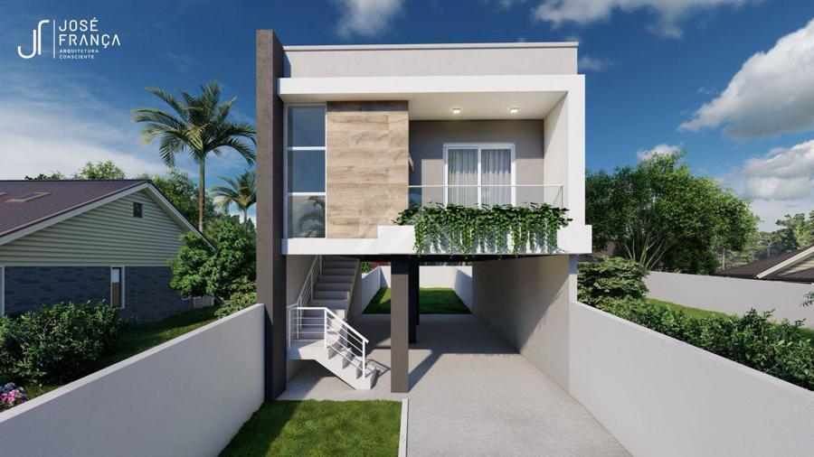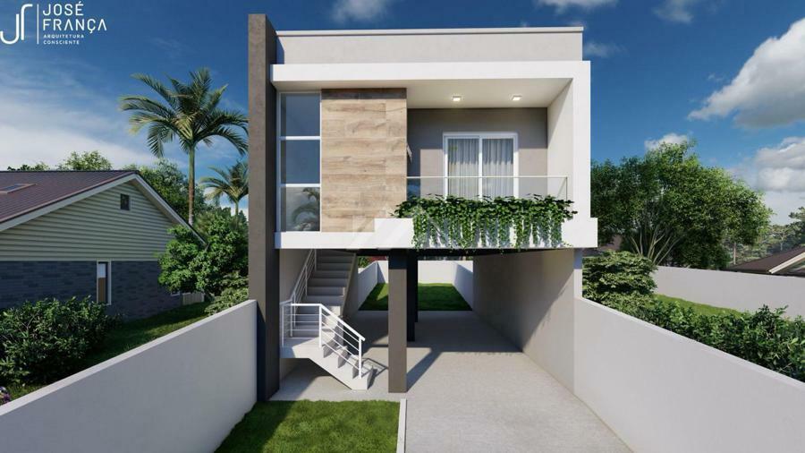 Essa casa sob pilotis na planta permite ao cliente participar de todo o planejamento do seu projeto, possibilitando assim que cada espaço seja definido como ele sempre sonhou