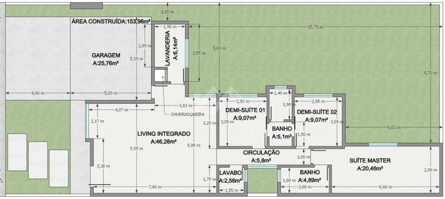 Área Total do Terreno 324,00m² : 12,00m de largura X 27,00m de comprimento.