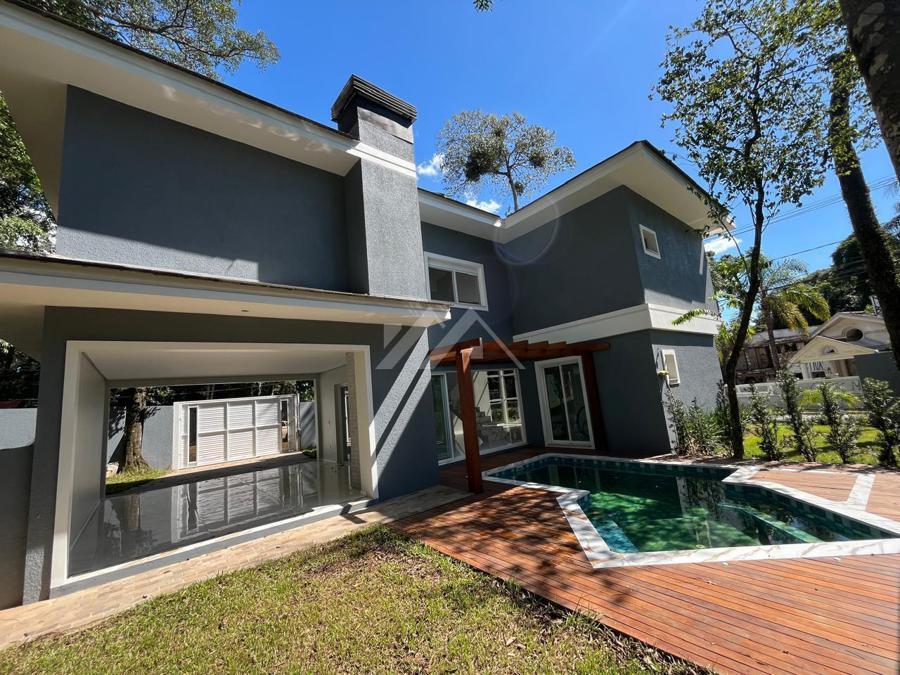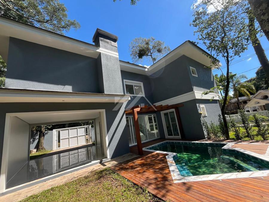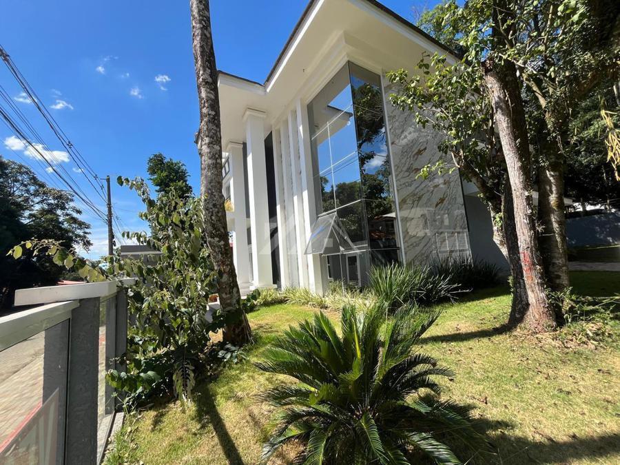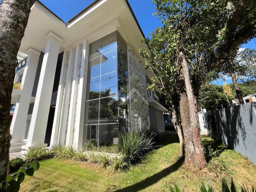 Rua bem arborizada, com casas de alto padrão